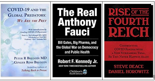 Rise of the Fourth Reich - Confronting Covid Fascism With A New Nuremberg Trial, So This Never Happens Again, (© 2023) by Steve Deace and Daniel Horowitz. Also by Steve Deace and Todd Erzen is: Faucian Bargain: The Most Powerful and Dangerous Bureaucrat in American History. (I forgot to include it in the list below. I know Fauci has a copy of Faucian Bargain, because I and many others sent him one.)