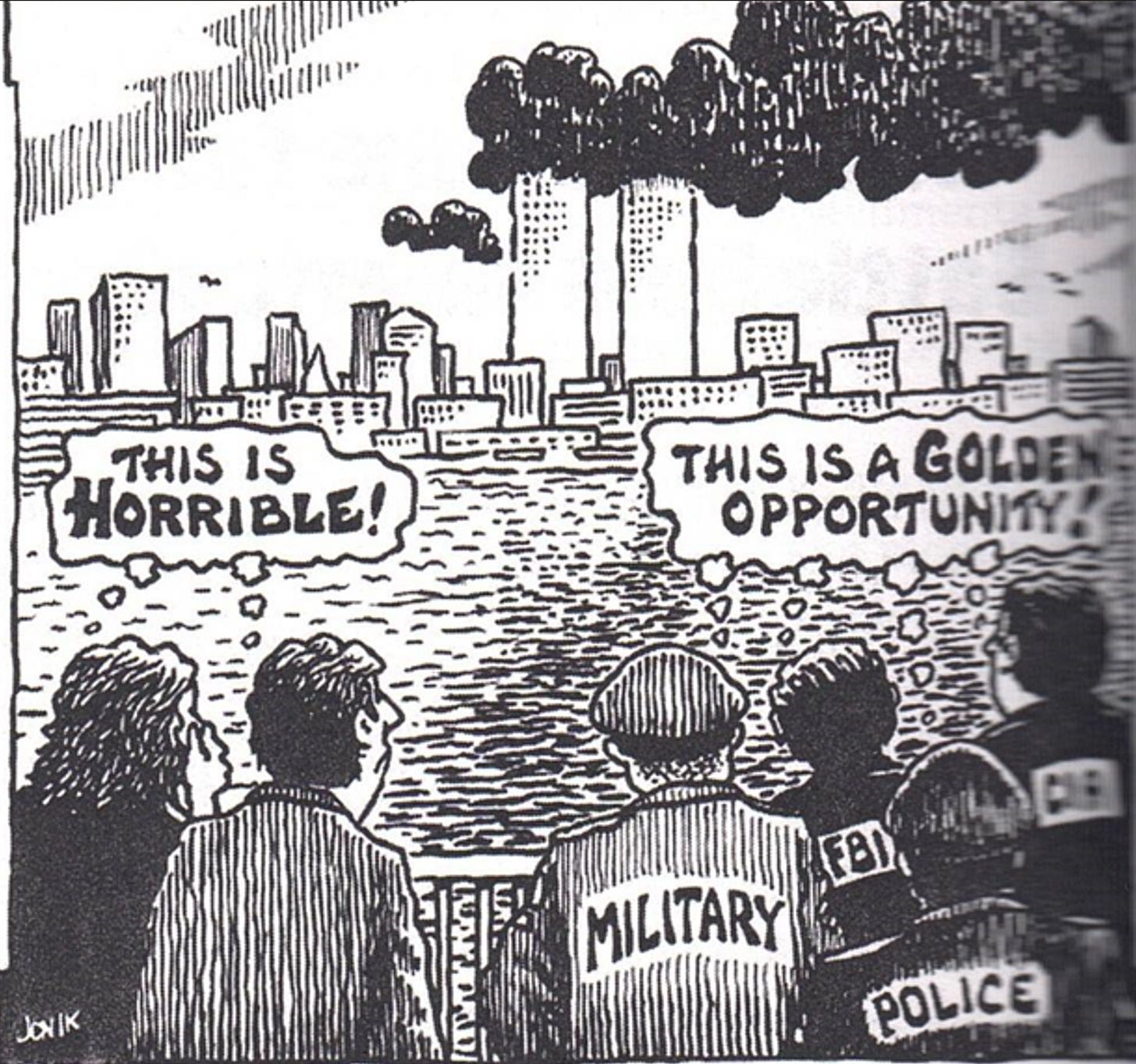 The FBI and CIA let it happen on purpose - LIHOP. The “Patriot Act” is the most unpatriotic act perpetrated on the American people - absolutely disgusting. Because of 9/11 people have to take their shoes off and submit to getting groped by TSA agents to board a commercial aircraft. And the federal government got to add yet another agency to the already bloated 450 federal government agencies - DHS.